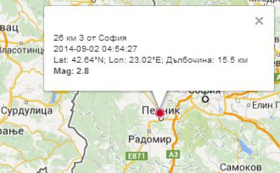 Трусът е регистриран в 3:45 часа местно време на дълбочина 10 километра.