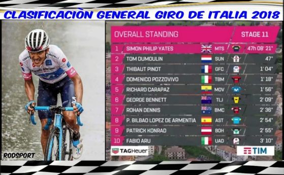 В генералното класиране не настъпиха някакви промени. Йейтс от тима на Mitchelton-Scott води с общо време 51:57.55 часа, а на 47 секунди зад него върви Том Дюмулен от Sunweb. Трети на 1,04 минути върви Тибо Пино от Groupama-FDJ.