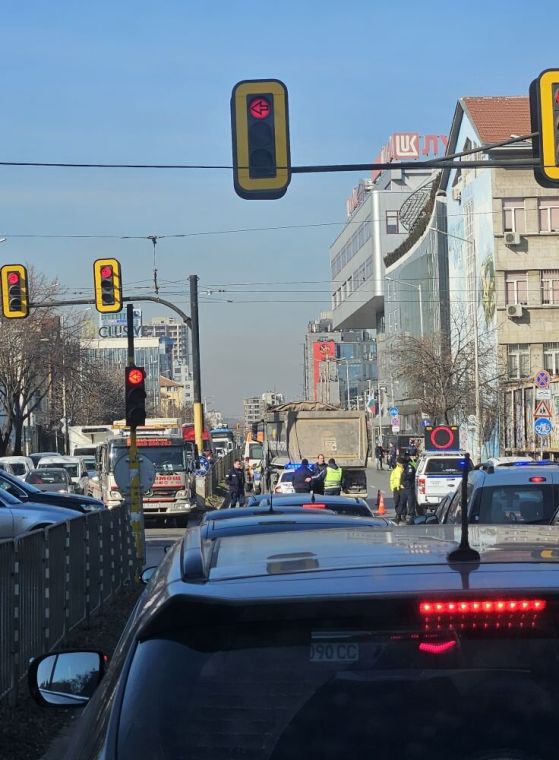 Кръстовището е блокирано, а движението е затруднено. Сигналът е получен в 10:15 часа.