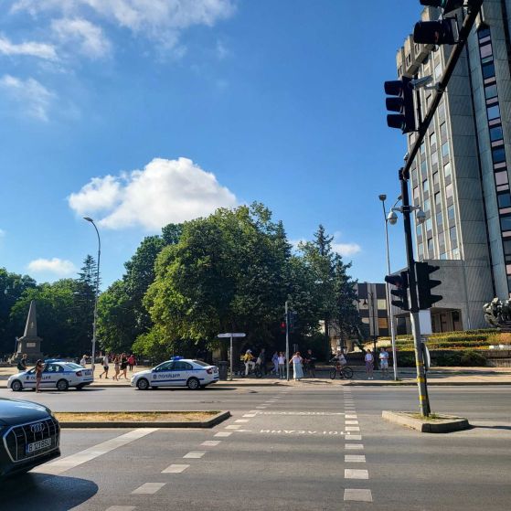 Полицейски коли пред Община Варна от този следобед. Снимка: Елица Мартинова
