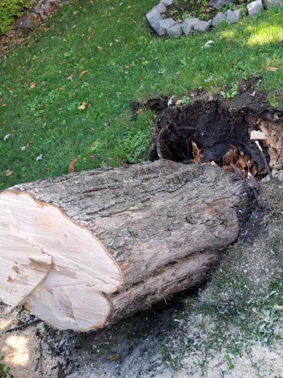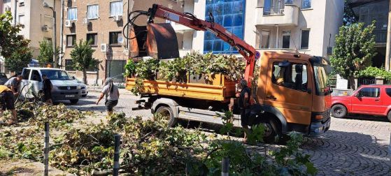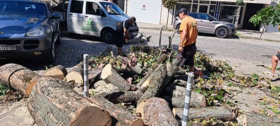 Аварийна група вече е на място. Дървото е нарязано и се извозва.