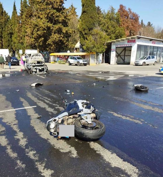 Автомобил с бургаска регистрация, който е извършвал ляв завой от бул. „Димитър Димов“ в посока гробищата, удря мотоциклет, движещ се правомерно в насрещната лента. По първоначална информация мотористът е шофирал с несъобразена скорост. Той е в тежко състояние и е откаран в болница.