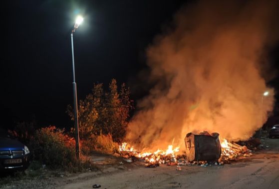 Само бързата намеса на пожарникарите е помогнала огънят да не обхване автомобили, разказаха очевидци. На улица "Бъндерица" огънят е пламнал около 3 ч. през нощта и е достигнал на сантиметри от паркирани на улицата коли. Собствениците са спасявали автомобилите с кофи вода до пристигането на пожарната.