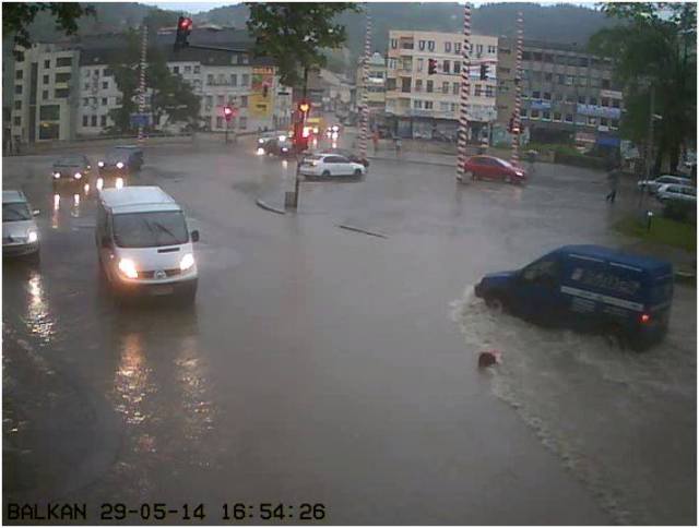 В Габрово дъждът наводни централните улици. Пороят е наводнил тротоарната площ, зоната за пешеходци е напълно непроходима.