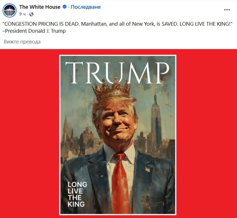 И това си проличава особено в буйно веселите, но тотално антиконституционни неща, за които той открито си мечтае. Преди няколко дни официалната страница на Белия дом пусна комвпютърно генериран образ на Тръмп с кокетна коронка на главата и надпис: „Да живее кралят!“