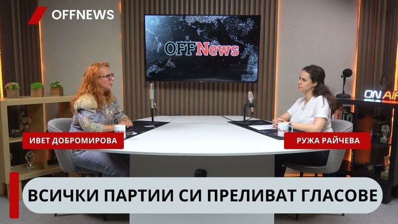 В студиото на OFFNews гостува Ивет Добромирова - пиар експерт и дългогодишен журналист. Разговаряхме за изводите от резултатите на частичните местни избори в Пазарджик, на които ДПС-Ново начало победи с 17,13%, ПП-ДБ се наредиха втори с 11,75%, а ГЕРБ останаха едва на шесто място с резултат от 6,61%. Избирателната активност, отчетена от ОИК-Пазарджик, е 35,09%. Обсъдихме политическите отношения между лидерите на ГЕРБ Бойко Борисов и ДПС-НН Делян Пеевски.