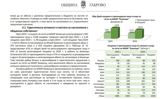 Отчет за изпълнение на Програма за развитие на туризма в Община Габрово за 2024 г. и приемане на Програма за развитие на туризма в Община Габрово за 2025 г. е документ, който се състои от няколко части, но най-основната е събрана в 40 страници, които може да прочетете в цялост във файла по-долу.