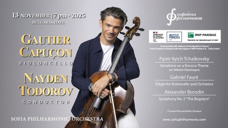 Френският виолончелист Готие Капюсон отново ще музицира под диригентството на Найден Тодоров. Събитието е днес, 13 ноември, в зала „България“, съобщават от Софийската филхармония.