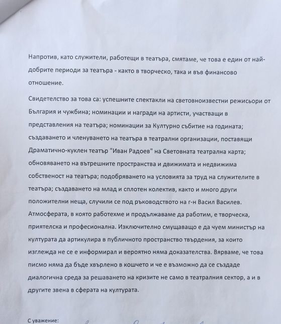 *Писмото на артистите от Народен театър "Иван Вазов" можете да прочетете ТУК.