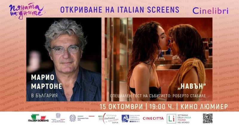 Мартоне лично ще открие второто издание на Italian Screens в София и ще представи филма си на 15 октомври от 19:00 ч. в кино „Люмиер“. Специален гост на събитието ще бъде Роберто Стабиле, ръководител на специалните проекти на легендарната киностудия Чинечита̀ и директор на международните отношения в ANICA.