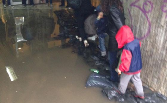 След вчерашните проливни дъждове, автобус от линия 45 на столичния градски транспорт се наводни.