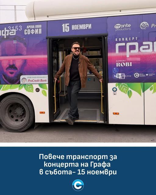 Допълнителни автобуси и реорганизация на линии ще има за концерта на Владо Ампов-Графа в "Арена 8888 София" тази вечер.