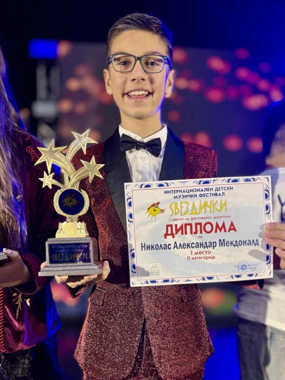 След едва година вокална подготовка 12-годишният Никълъс Александър Макдоналд от Дряново вече е носител на няколко престижни първи награди у нас и в чужбина.
