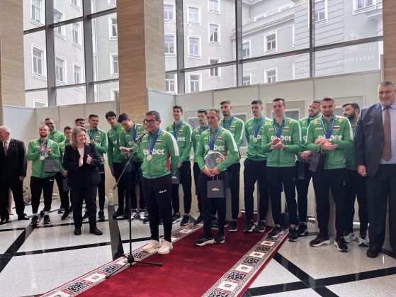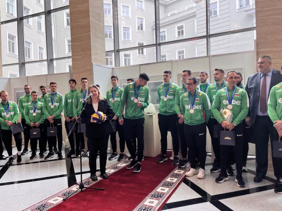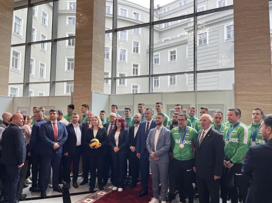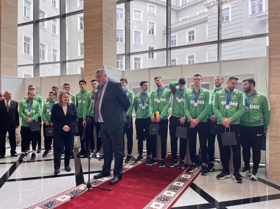 Депутатите посрещнаха с аплодисменти и на крака националния отбор по волейбол на България и треньорския щаб. Те бяха приветствани в пленарната зала с бурни овации и възгласи "Браво". По-рано днес и президентът Румен Радев удостои с почетни плакети състезателите от отбора, треньорския щаб и Българската федерация по волейбол.