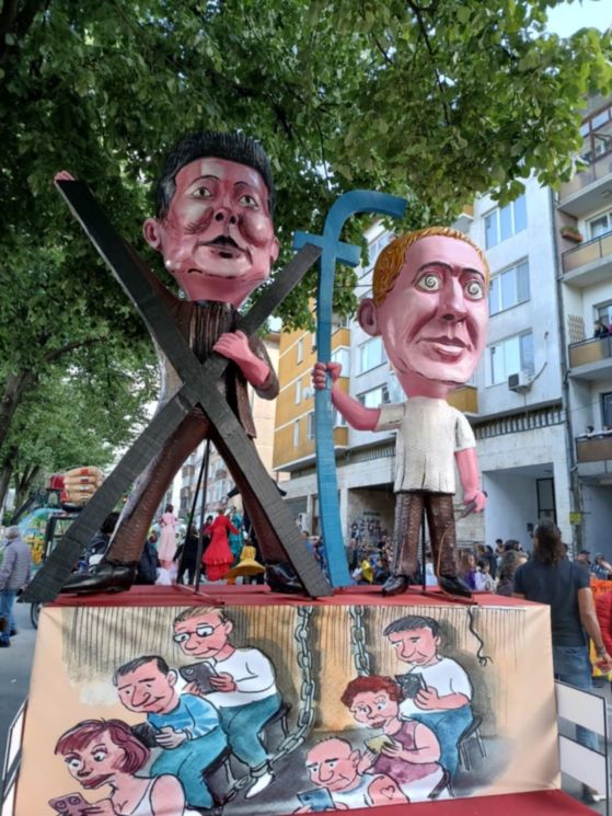 Шествието обиколи централните градски улици, като сред живите карикатури бяха световни и български политици.