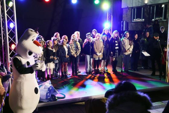 Празничната програма започна с концерт на Общинския духов оркестър и Мажоретния състав, след което децата се включиха във весел коледен празник със състезателни игри, сапунени мехури и детска дискотека заедно с Дядо Коледа, Снежанка и Олаф.