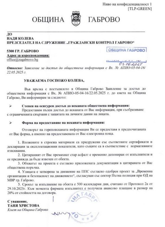 Според така предоставената информация, не става ясно дали Община Габрово ще извърши проверка по нашия сигнал, или проверките си остават само документално. Според отговора, ремонтът би следвало да приключи до петък, 13 март 2026 г.