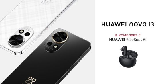 Всички смартфони от серията HUAWEI nova 13 се предлагат в комплект с безжични слушалки HUAWEI FreeBuds 6i за периода до 14.02.2025 г. или до изчерпване на количествата. Комплектът включва още 100W зарядно с USB-A и USB-C портове и втори кабел в комплекта. Цветът и наличността на продуктите в комплекта може да варира в различните търговски обекти.