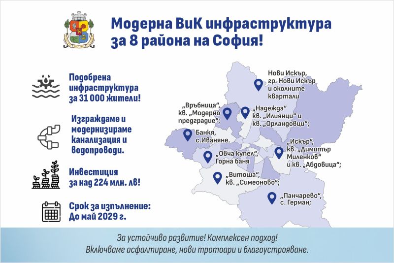 Инвестициите ще обхванат квартали и населени места в осем района на столицата:
