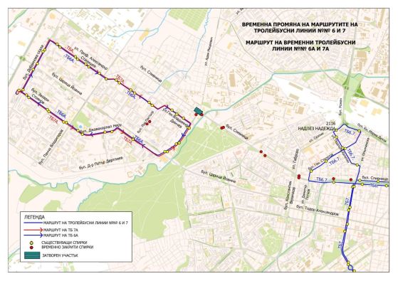 Променят се маршрути на линии на градския транспорт - на тролейбуси номер 6 и 7; и на автобуси номер 82, 83, 108, 309, 310 и X43.