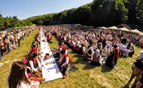 Над 3000 гости, облечени в народни носии седнаха на най-дългата сватбена трапеза, част от четвъртото издание на националния фолклорен събор „Лудогорие“.
