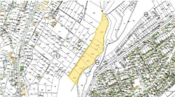 Извадка от ГИС на СО – означени имоти (жълто) по протежение на старо речно корито