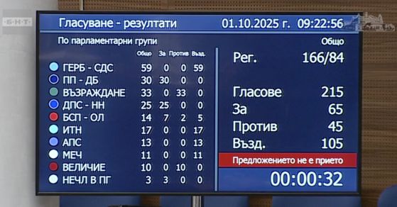 Народните представители гласуваха против проекторешенията на ПП-ДБ и "ДПС-Ново начало" за възбуждане на наказателно преследване срещу четирима депутати от "Възраждане" - Славчо Крумов, Никола Димитров, Ивайло Чорбов и Йордан Тодоров.