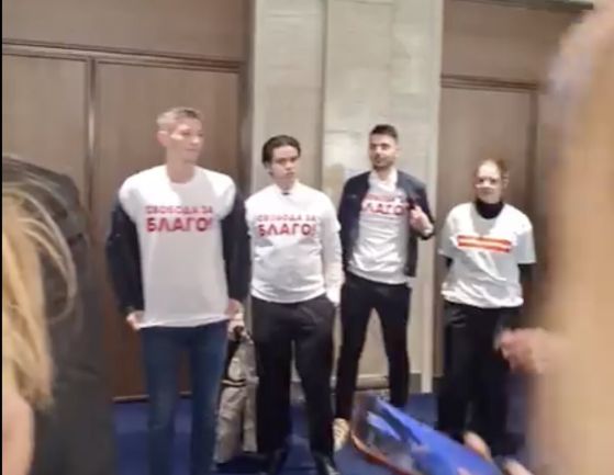 Младежи с тениски "Свобода за Благо!" са в сградата на Народното събрание.