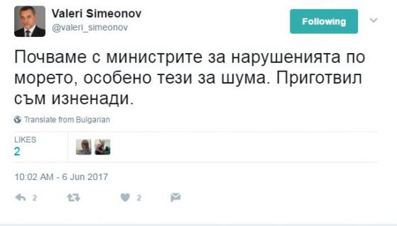 Вицепремиерът, отговарящ за демографската и икономическа политика Валери Симеонов, обяви, че започват проверки по морето. В профила си в Туитър той написа: