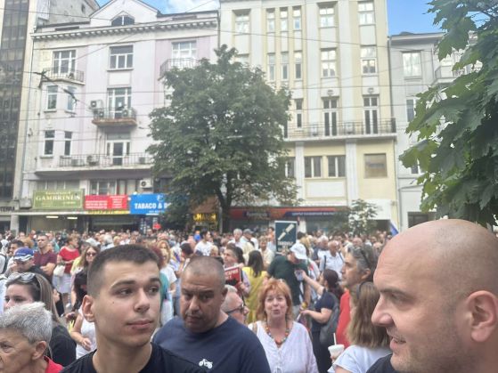 19:08 - Протестиращите вече надхвърлят 1000 души и на ул. "Алабин" бе блокирано движението на колите.