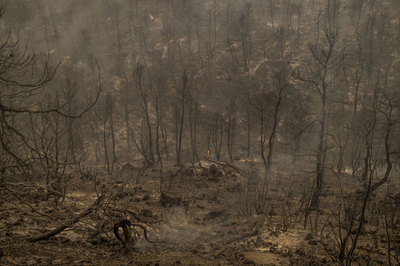 Евакуирани са жителите на село Хлои, а огънят е отдалечен на безопасно разстояние от стадата на фермерите. Теренът е труден за гасене, защото пожарните коли не могат да влязат в гъстата гора.