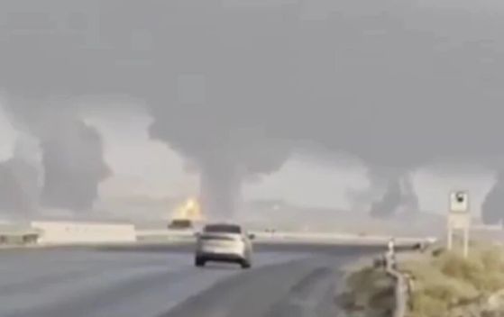 На видеозапис, заснет малко след ударите, се вижда как от мястото се издигат няколко стълба дим.