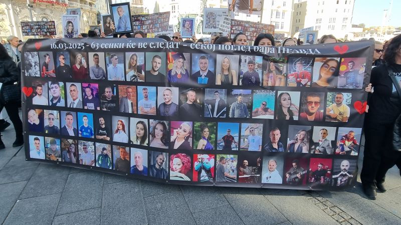 От площад „Македония”, където гражданите се събраха, шествието, водено от родителите, които носеха снимките на загиналите в пожара свои деца, се отправи към сградата на парламента в Скопие.