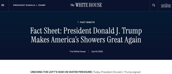 Съобщението на официалната страница на Белия дом гласи: Президентът Доналд Дж. Тръмп прави американските душове отново велики".