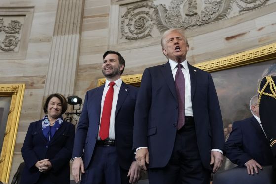 Джей Ди Ванс положи клетва пред съдията от Върховния съд Брет Кавано като вицепрезидент на САЩ на официалната церемония по встъпването в длъжност на избрания за президент Доналд Тръмп в Ротондата в сградата на американския Конгрес.