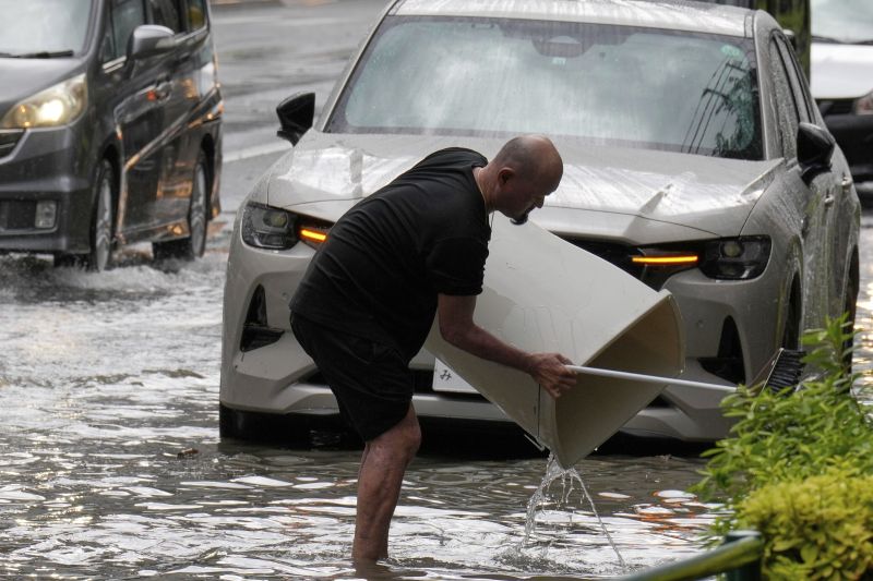 Проливни дъждове наводниха улици и прекъснаха железопътния и въздушния трафик в Токио, синоптиците прогнозират още бури, предаде Асошиейтед прес, цитирана от БТА.