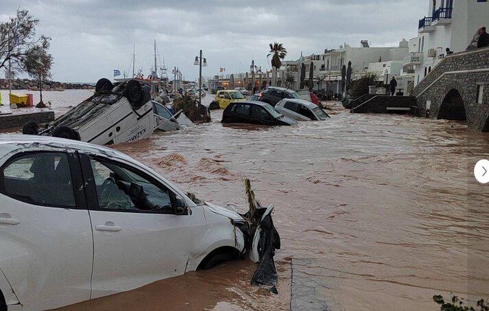 Тежко, макар и не толкова драматично, е положението и на други острови от Цикладите. В съседния Сирос, където е административната столица на региона, улиците също са се превърнали в реки. Не по-добро е положението и в популярия курорт Миконос.