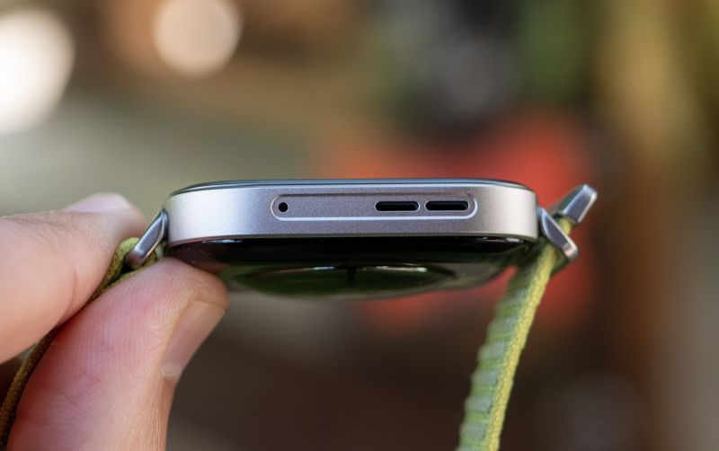 Устройството разполага с функционална коронка и страничен бутон с нисък профил, а в долната част са позиционирани сензорите. Вградените микрофон и високоговорител позволяват допълнителни удобства при ежедневна употреба чрез възможност за провеждане на разговори през свързания телефон.
