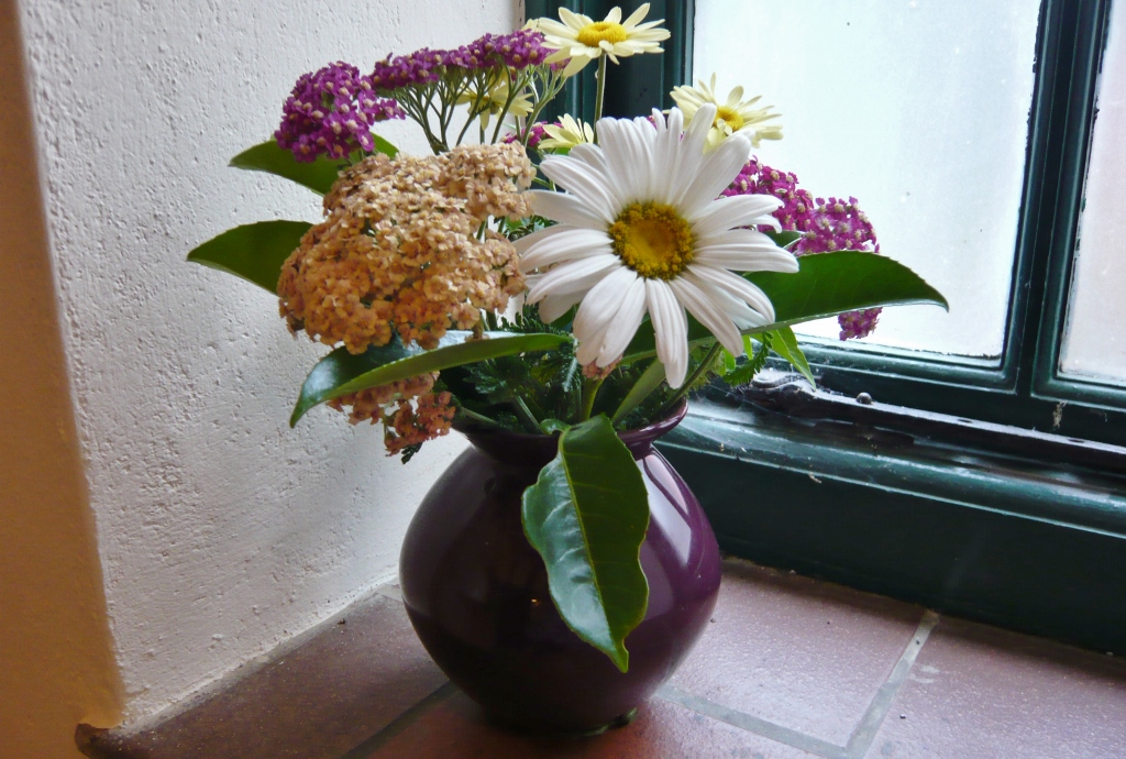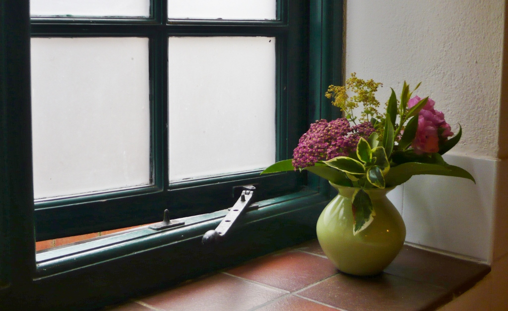 Вътре е закичено със свежи цветя, които щраквам с умиление: