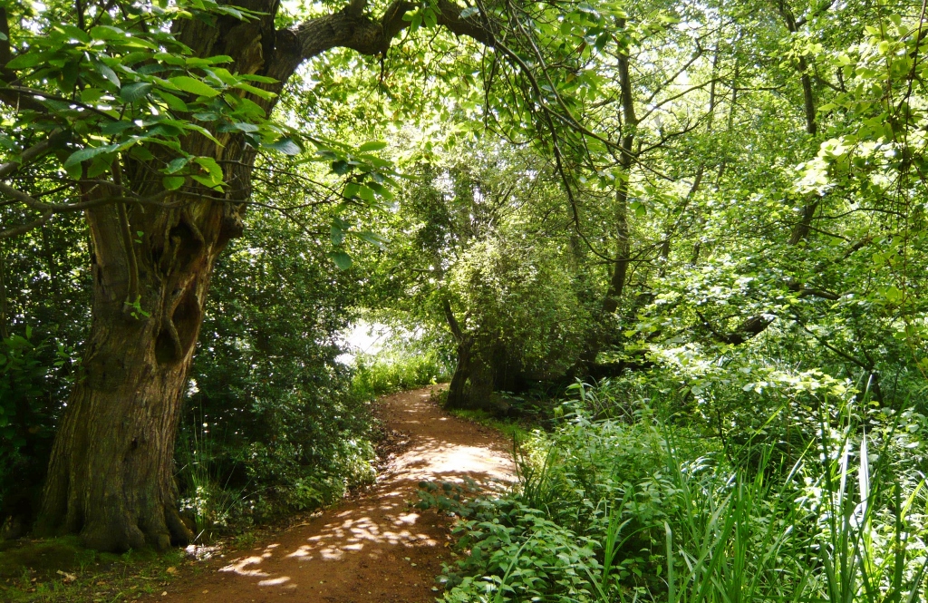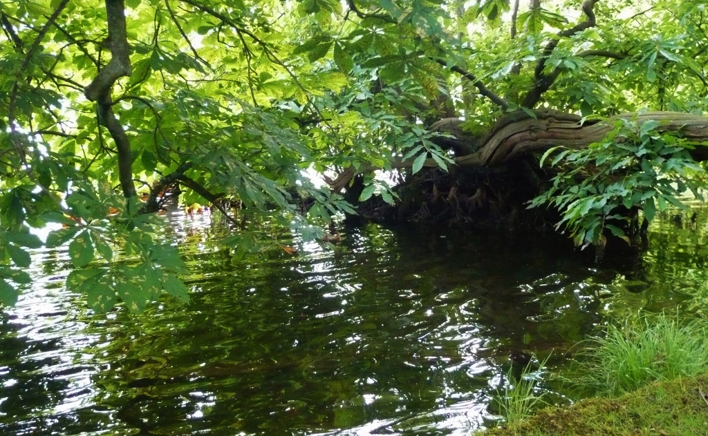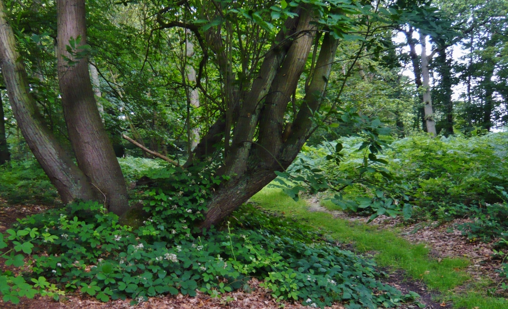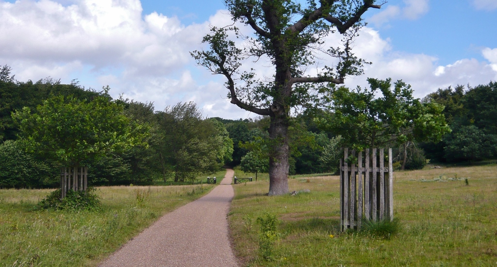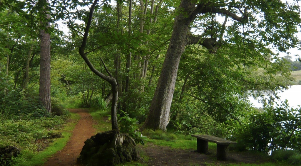 Пътеката навлиза сред гора, която според брошурката обхваща 2 кв. километра, но ние ще минем само през ъгълчето. Целият парк е моделиран преди 200 години от втория най-важен ландшафтен архитект в страната, което си личи. Пътеката е от някаква почва в керемиден цвят и се откроява артистично на фона на околното ярко зелено.
