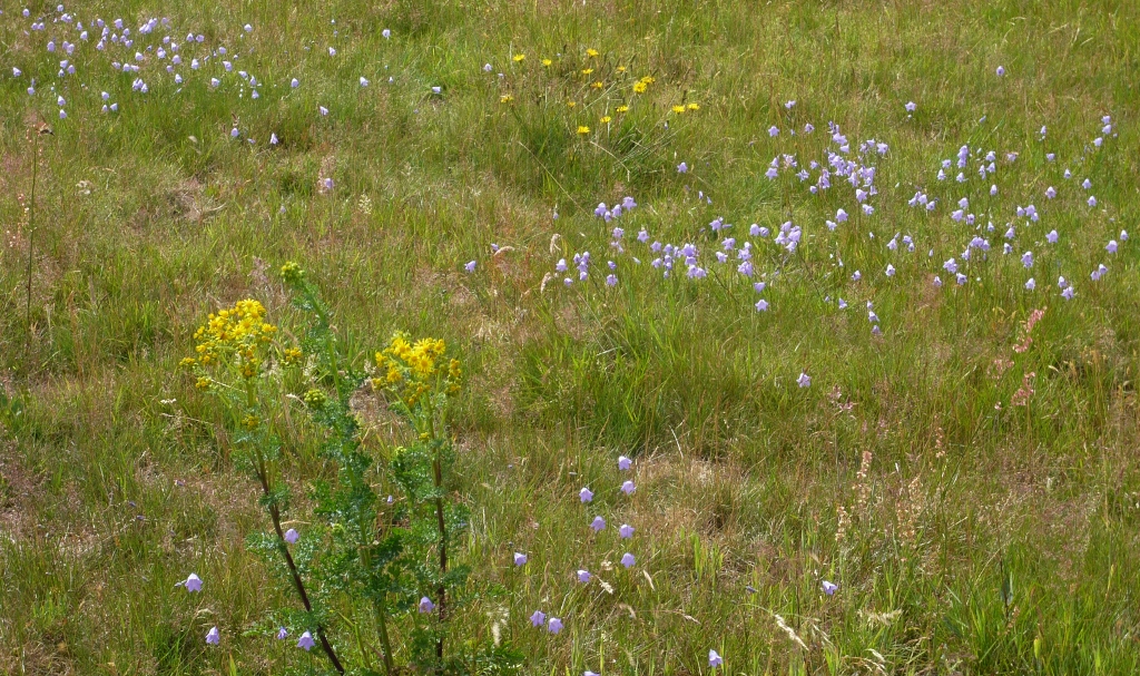 Докато цъквам този кадър, ни подминават двойка възрастни туристи. Дамата надниква какво снимам и пита "Това са заешки камбанки, нали?" . Кимаме дълбокомислено в съгласие. За пръв път чувам за заешки камбанки, но англичаните много обичат да бъбрят неангажиращо, така че се включваме в бъбренето. "Да, много са очарователни"... "Я, колко много има из полето" ... "Какъв чудесен топъл ден " ... Не е много информативно, но споделената радост стопля душата.
