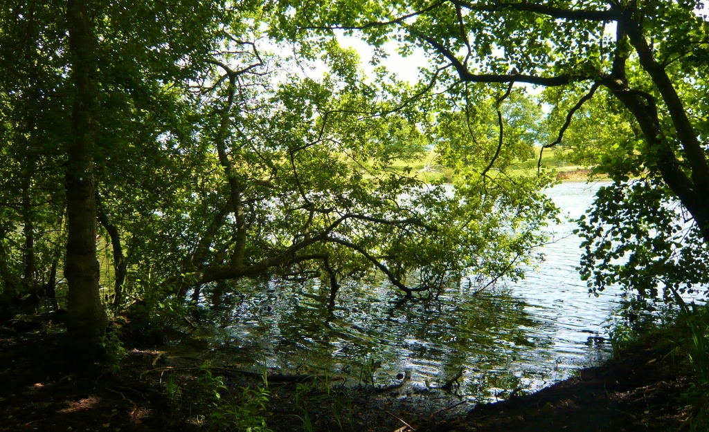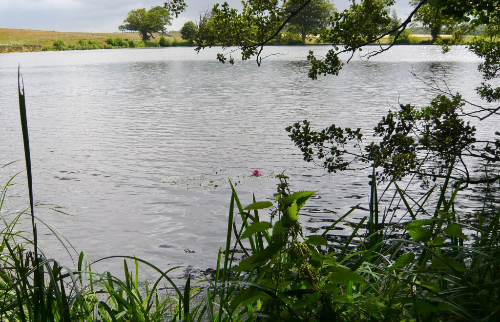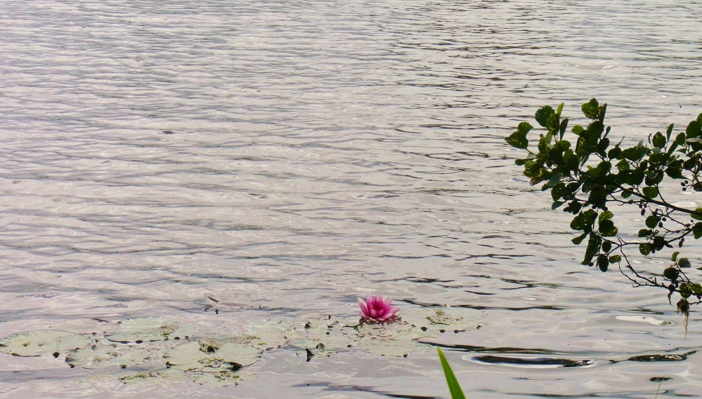 В езерото плуват лилии, а вятърът дипли повърхността на вълнички.