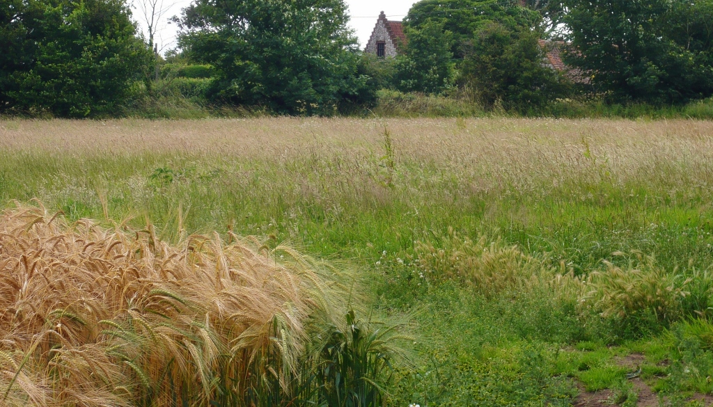 Долчинката между полетата с жито е с пресечен терен и трудна за обработване, но това не значи че няма да се ползва - превърната е в пасище.