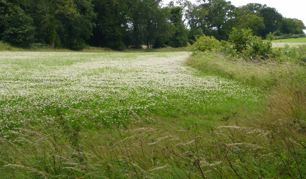 Впечатляваме се и от този обширен посев детелина, саден с неясна нам цел, но така се е белнал...