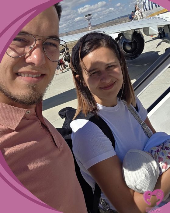 Хеленка с родителите си при качването на самолета от Бургас за Краков