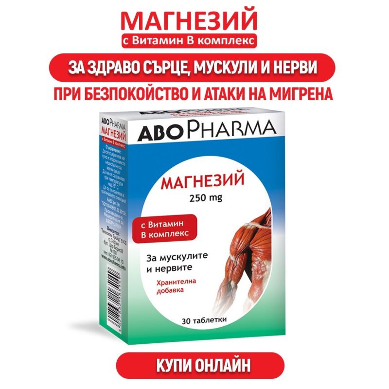Магнезий + витамин В комплекс на ABOPharma са таблетки, разработени по специална технология, която позволява максимално бързото им разтваряне и усвояване от организма.