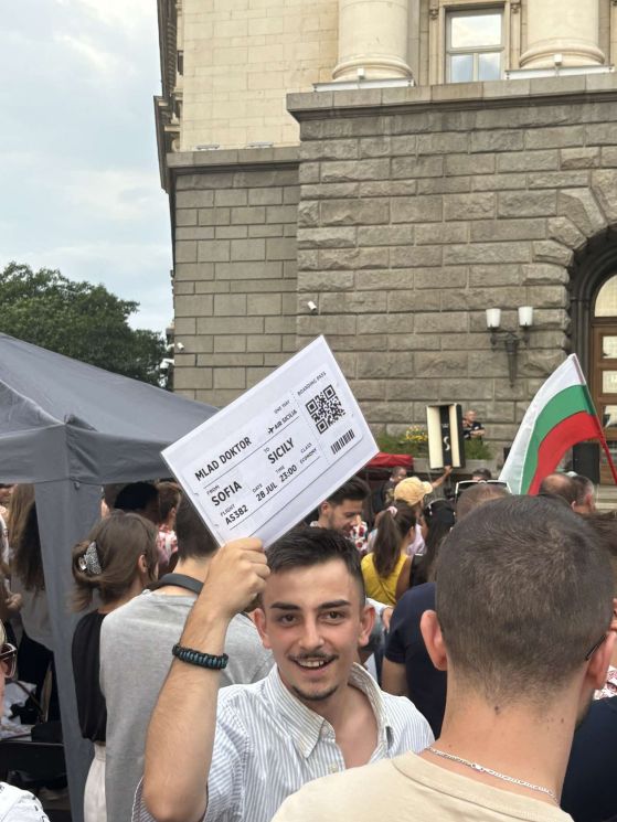 Протестиращите се възмущават, че докато са чакали решения от отговорните институции, "депутати изпратиха младите лекари да работим в чужбина и обявиха, че ще си внесат специалисти за по 500 долара от чужбина".